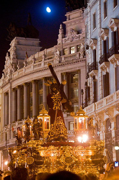 Ya en el año 1946, auspiciados por la Reglas inspiradas en las mismas por las que se regía la propia del Gran Poder de Sevilla, se lleva a cabo la primera salida procesional de la Cofradía, únicamente con el paso del Señor, y no con pocos esfuerzos ya que se tenía como máxima que no se efectuaría estación de penitencia hasta que no se estuviera en condiciones de no desmerecer a las cofradías sevillanas, al representar esta de Madrid un fiel reflejo de aquellas en la distancia geográfica, que no sentimental. Se establece la hora de las dos de la madrugada del Viernes Santo como salida de aquella primera procesión, tratando de emular plenamente a la famosa “Madrugá” sevillana, si bien el paso del tiempo y las connotaciones de la ciudad han ido situándola en la tarde-noche del Jueves Santo. Ya en el año 1948, se hacía lo propio con el paso de palio de Ntra. Sra. de la Esperanza Macarena.