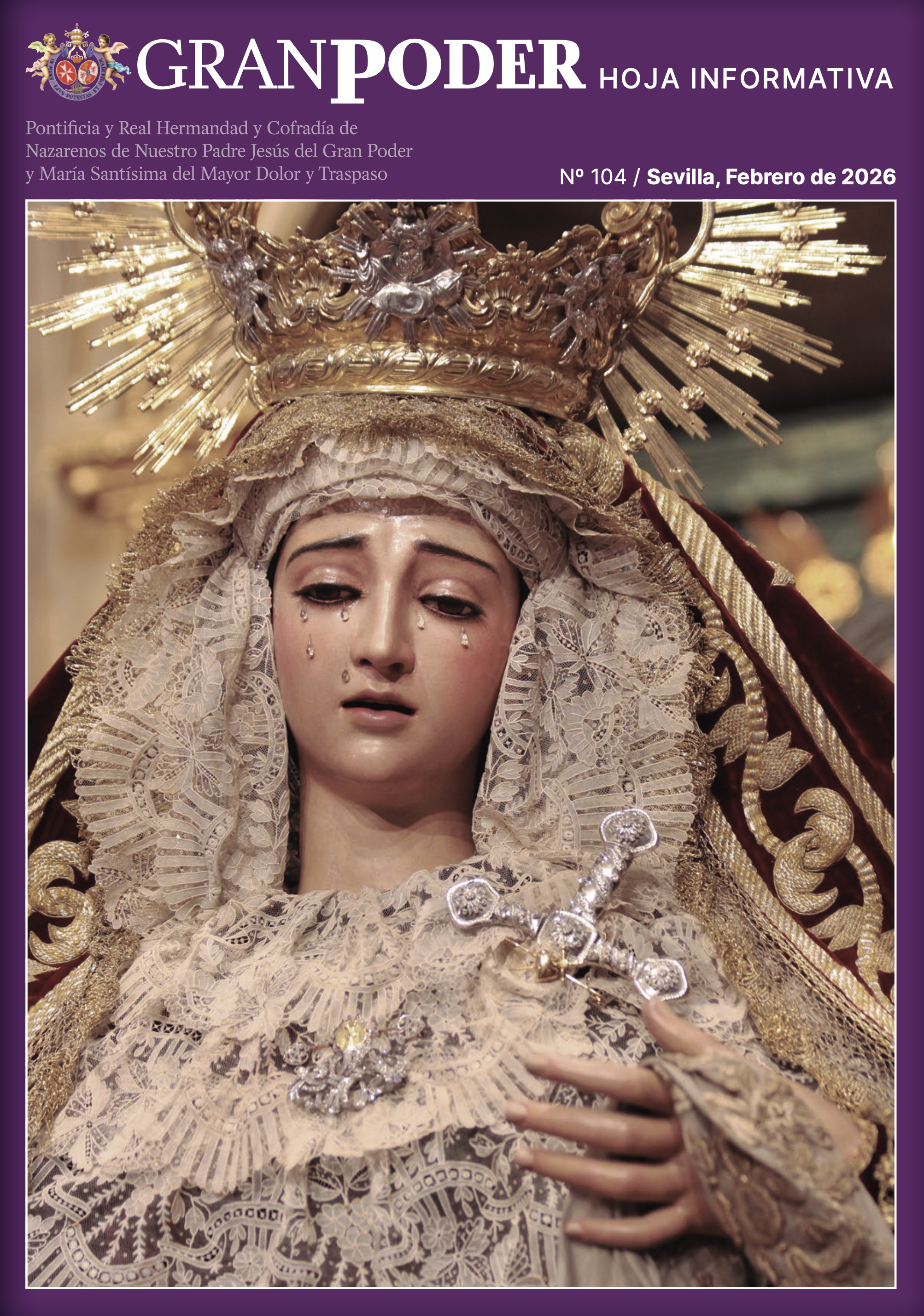 La Hermandad del Gran Poder, fiel a su compromiso de comunicación con sus hermanos, ha editado este mes de febrero la Hoja Informativa n.º 104, que en los próximos días llegará al domicilio de todos ellos en formato papel. En el enlace que se adjunta al final de esta noticia se puede consultar su versión digital.