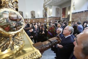 Desde primeras horas, el Hermano Mayor y la Junta de Gobierno recibieron también a las distintas autoridades religiosas, civiles y militares que, como cada año, acudieron a la Basílica, así como a las representaciones de Hermandades de penitencia, de gloria y sacramentales, especialmente las Hermandades de la feligresía y las de la Madrugada, quienes elevaron sus oraciones y realizaron una ofrenda floral a nuestros Amantísimos Titulares.