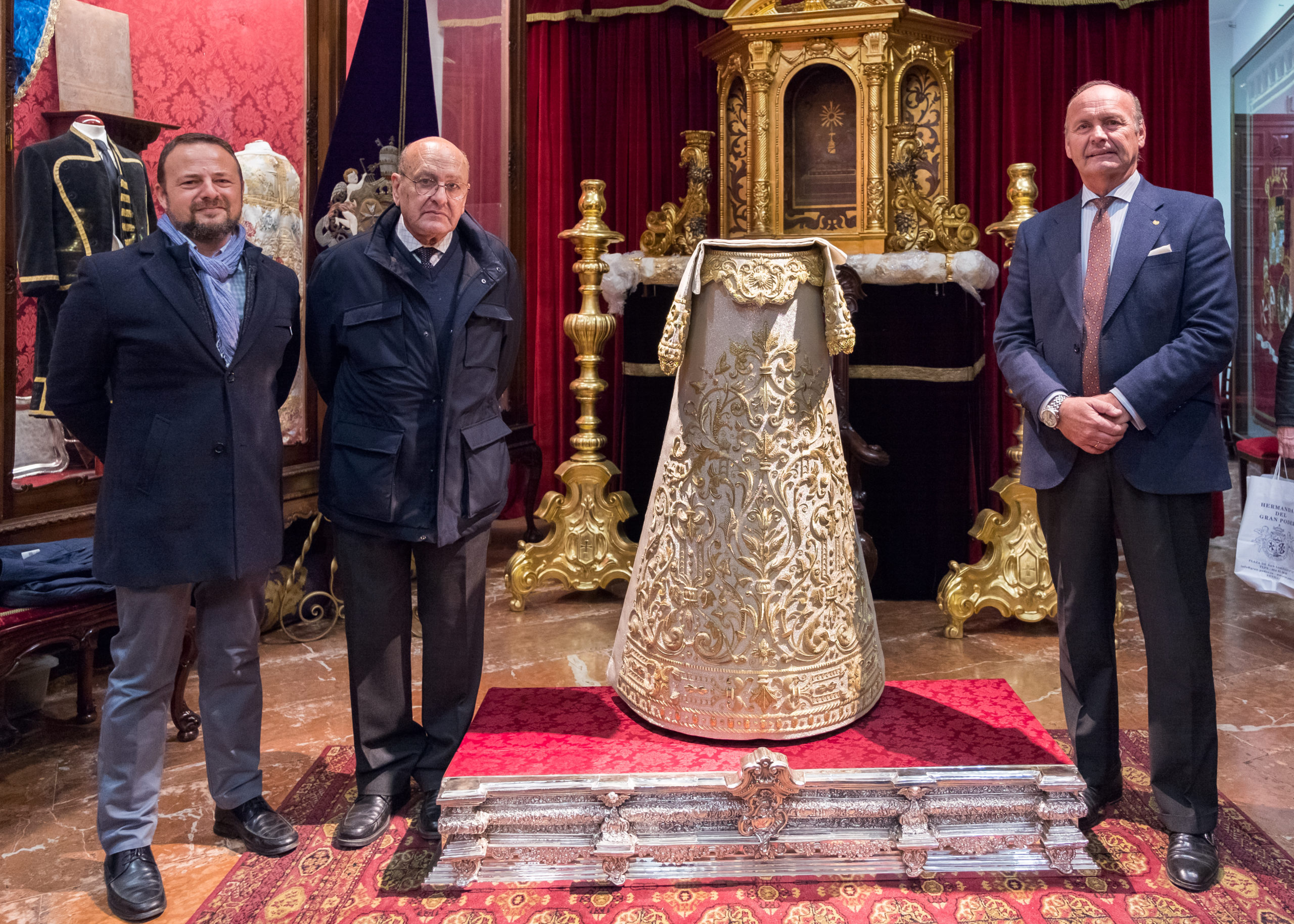 Posteriormente el bordador Joaquín López explicó el proceso de ejecución del bordado, remarcando que se ha usado tanto el mismo material como la misma puntada respetando una homogeneidad en la obra.  En su intervención ha destacado la calidad del tisú empleado, aludiendo a la alta calidad del material. Finalmente, ha agradeciendo a la Hermandad la confianza deposita.