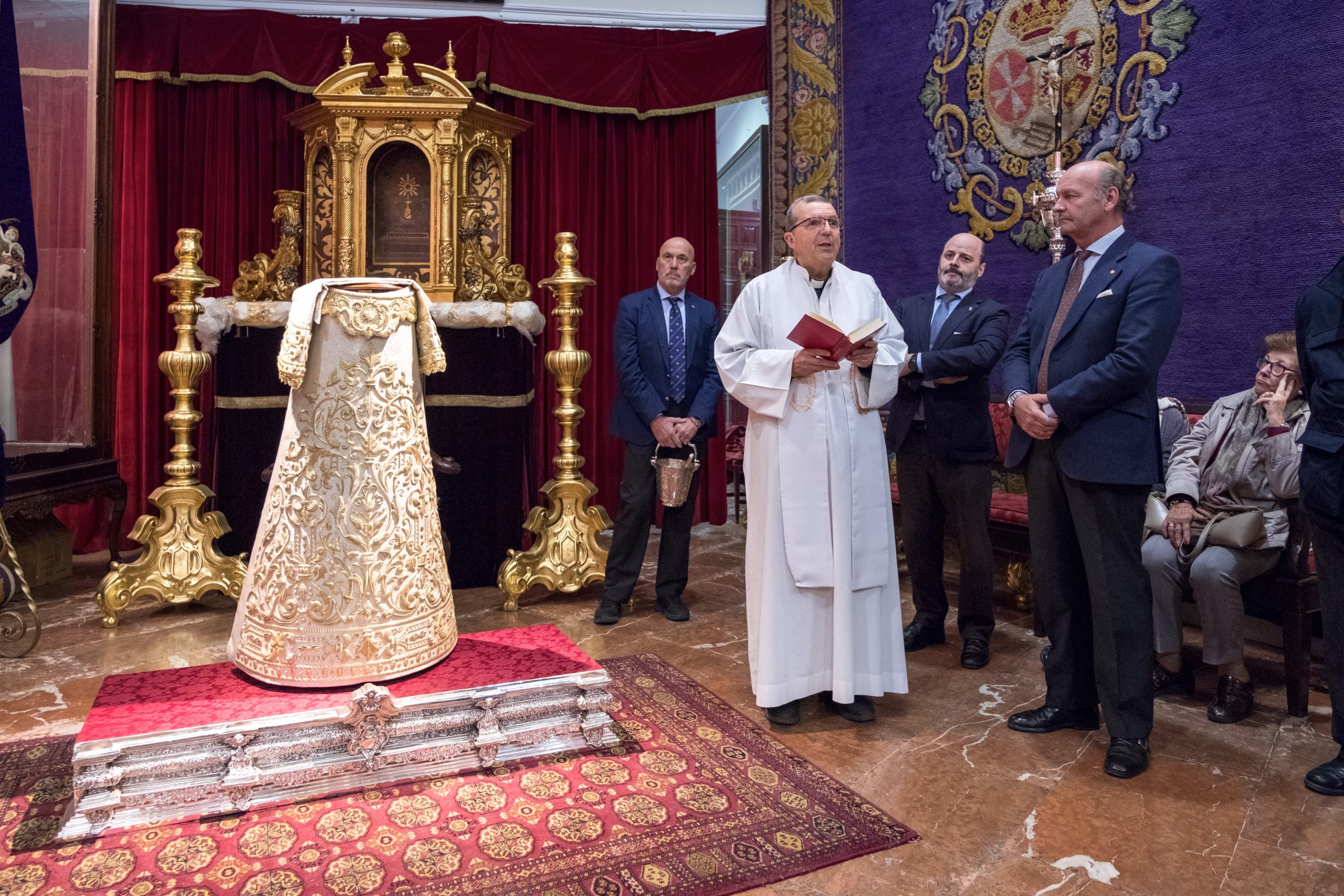 Nuestro director espiritual y rector de la Basílica, D. Francisco de Borja Medina Gil-Delgado, ha bendecido la saya tras su presentación.