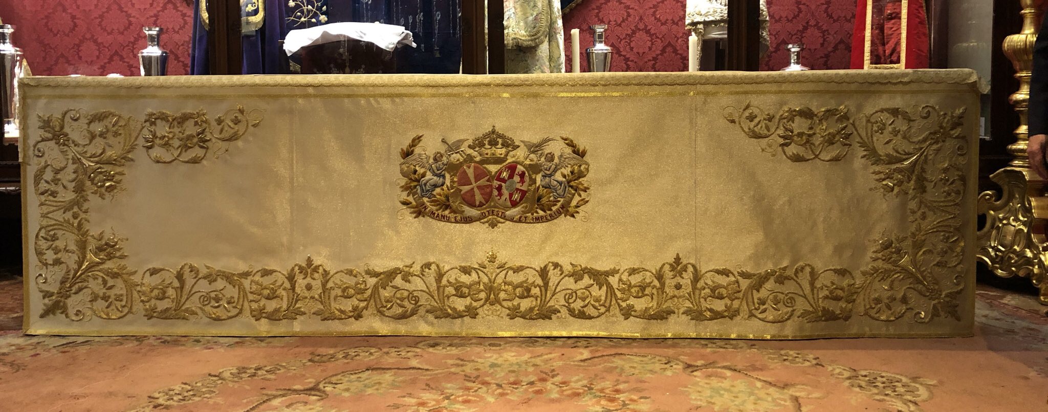 La Hermandad del Gran Poder recupera para su ajuar litúrgico un antiguo paño de púlpito bordado en 1919 por Santa Isabel para su uso como frontal de altar.