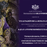 El viernes 6 de marzo, tras la finalización de la Santa Misa de Hermandad, D. m., se celebrará una nueva edición de la Exaltación de la Semana Santa, organizada por la Juventud del Gran Poder, que correrá a cargo de N.…