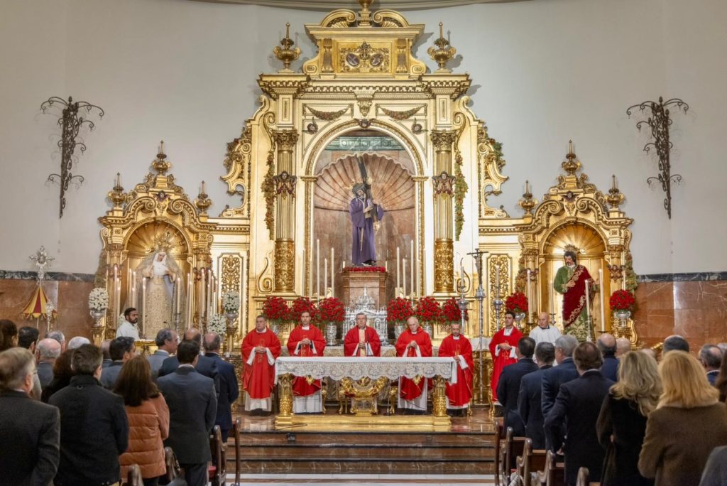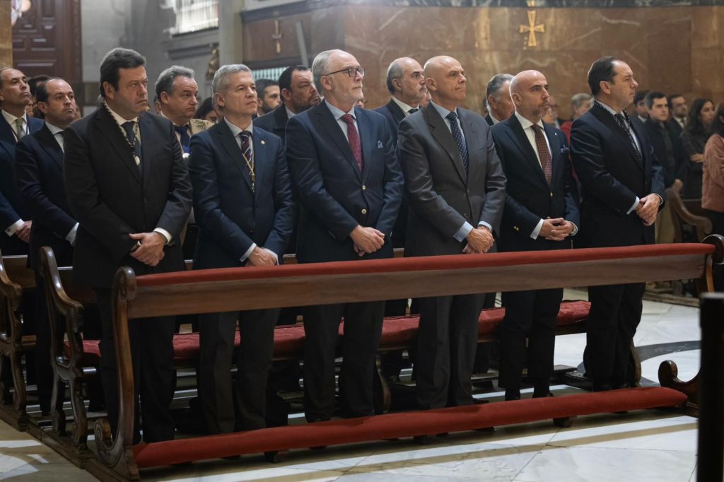 Posteriormente, tuvo lugar en la Basílica la Santa Misa de invocación al Espíritu Santo, oficiada por N. H. D. Francisco de Borja Medina Gil-Delgado y a la que asistieron representantes de distintas hermandades.